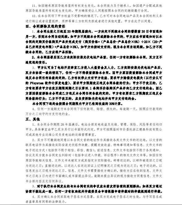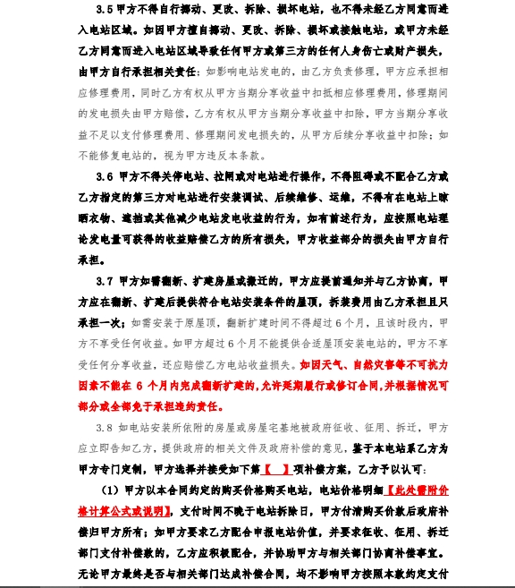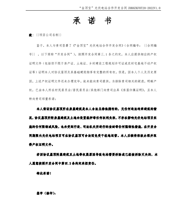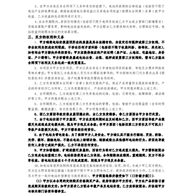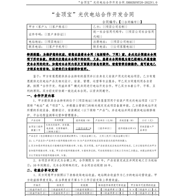 深扒金顶宝合同,无论是框架结构,还是内容细则,都严格遵守国家能源局合作开发范本合同的相关条款,最大程度保障用户权益,从源头减少合同纠纷,进一步降低了户用项目的安装风险。